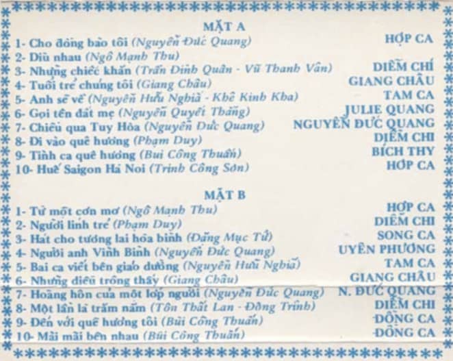 Hãy là người đầu tiên nhận xét “Băng nhạc Du ca 1”